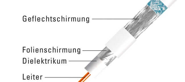 Kabel von besserer Qualität sind wesentlich aufwendiger aufgebaut, nämlich als sogenannte Koaxialkabel mit einem Innenleiter in der Mitte, der von einer Isolierschicht und einem Außenleiter umgeben ist. Durch die hohlzylindrische Form schützt der Außenleiter den Innenleiter vor Störstrahlung. Weiteren Schutz bietet ein Geflecht aus Aluminium, das um den Außenleiter gelegt wird. Wenn ein Kabel mit dem Feature „3-fach geschirmt“ wirbt, kommen drei Lagen Aluminiumfolie zum Einsatz.