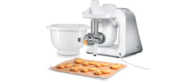 Doch Bosch hat die Serie nicht nur optisch aufgefrischt, die Küchenmaschinen sind noch leistungsfähiger und vielseitiger geworden: 1.000-W-Motor, Planetengetriebe und die neue bis zu 1 kg Mehl plus weitere Zutaten fassende Edelstahlschüssen erleichtern das heimische Backhandwerk. Liebhaber von Kleingebäck werden sich über das neue Lifestyle-Set „BakingSensation“ freuen: bis zu vier verschiedene Gebäckvarianten lassen sich mit dem Fleischwolf in Kombination mit dem Spritzgebäckvorsatz zu köstlichem Gebäck verarbeiten, in Kringel oder Streifen legen – und das ohne klebrige Finger. Zudem beinhaltet das Set eine zusätzlich Kunststoffschüssel – besonders geeignet für schweren Hefeteig.