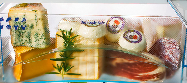 Da die verschiedenen Lebensmittel auch unterschiedliche Lagerbedingungen brauchen, bietet Liebherr Frische nach Maß: Die BioFresh-Safes sind individuell regelbar. Bei hoher Luftfeuchtigkeit und einer Temperatur knapp über 0 °C bleiben Obst und Gemüse im HydroSafe deutlich länger knackig, aromatisch und frisch. Käse, Fleisch und Fisch profitieren vom vergleichsweise trockenen, kalten Klima im DrySafe. Eine elektronische Steuerung garantiert ein konstantes Klima für superlange Frische.