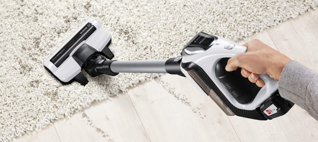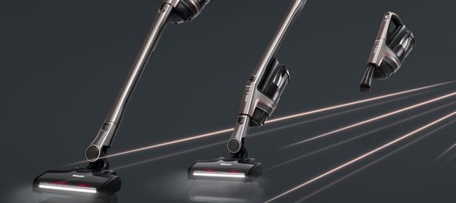 Der kabellose Staubsauger Triflex HX1 von Miele lässt sich dank seines 3-in-1-Konzeptes mit wenigen Handgriffen in 3 verschiedene Staubsauger verwandeln lässt: in einen reichweitenstarken Bodenstaubsauger, in einen komfortablen Sauger für Zimmerecken und -decken und in ein kompaktes Gerät fürs Auto und für Polstermöbel. Werden große Bodenflächen gereinigt, kommt die intelligente Elektrobürste zum Einsatz. Sie erkennt die Art des Bodenbelags und passt die Leistung daran automatisch an – Teppichböden beispielsweise werden so automatisch kräftiger und damit gründlicher gesaugt.